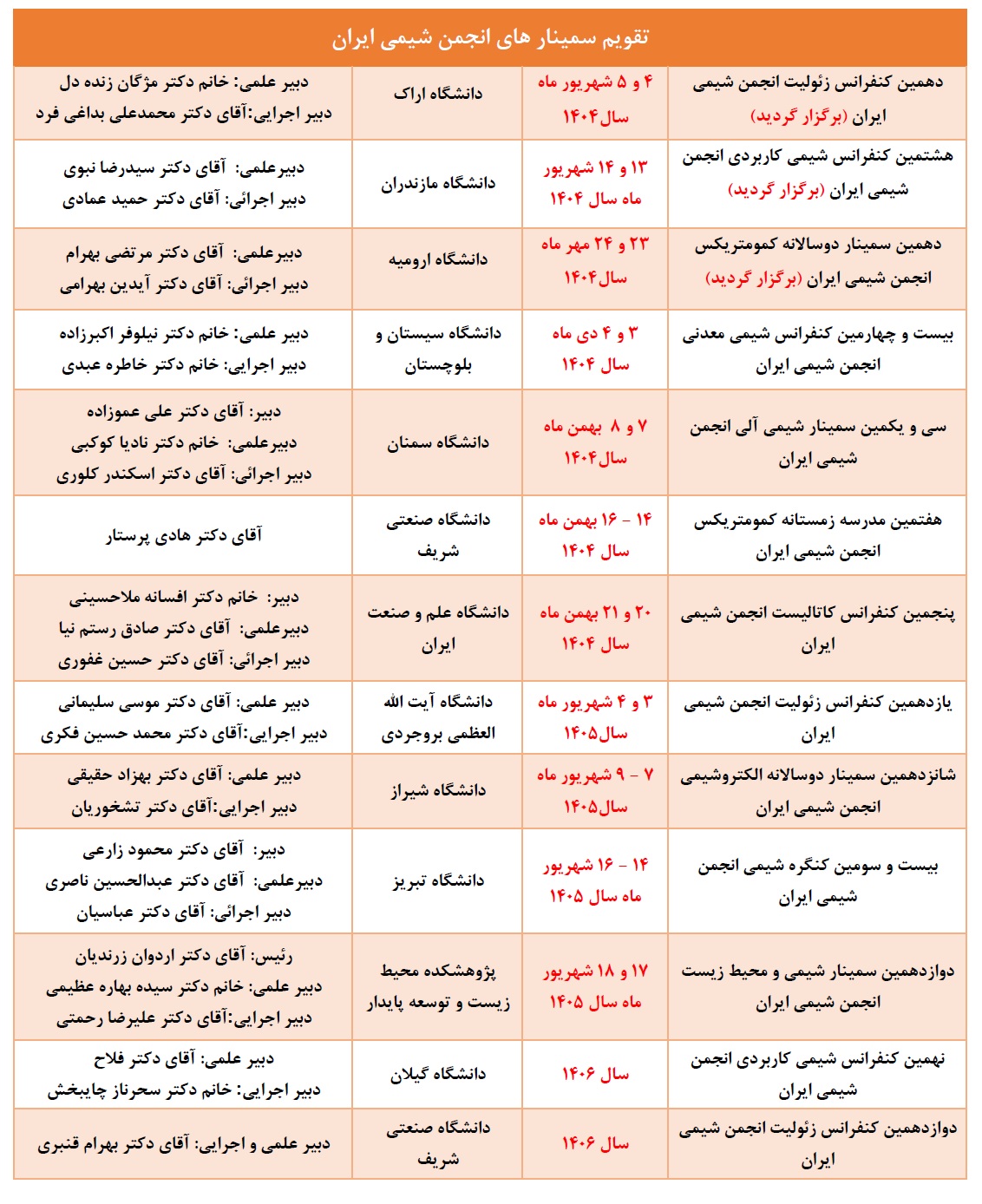 - تقویم سمینارها و وبینارهای انجمن شیمی ایران