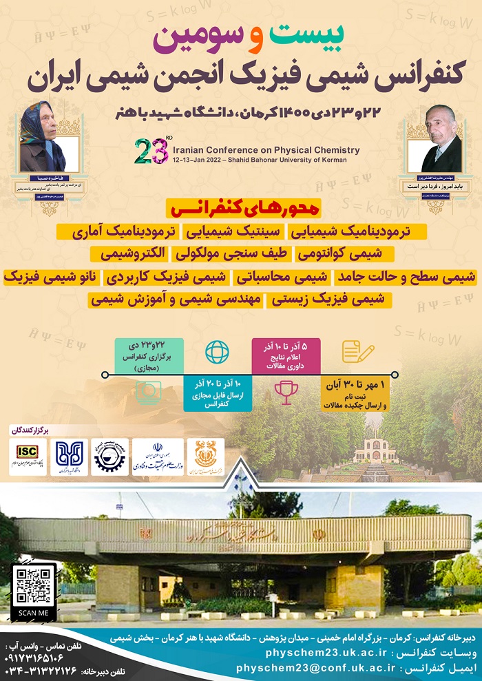 سخنرانان مدعو و کلیدی بیست و سومین کنفرانس شیمی فیزیک انجمن شیمی ایران ۲۱ دی ۱۴۰۰ زمان مطالعه : ۱ دقیقه خبرها ۲۲ و ۲۳ دی ماه ۱۴۰۰دانشگاه شهید باهنر کرمان لینک سخنرانان مدعو: https://online2.uk.ac.ir/c_icspc_talk1/ https://online2.uk.ac.ir/c_icspc_talk2/
