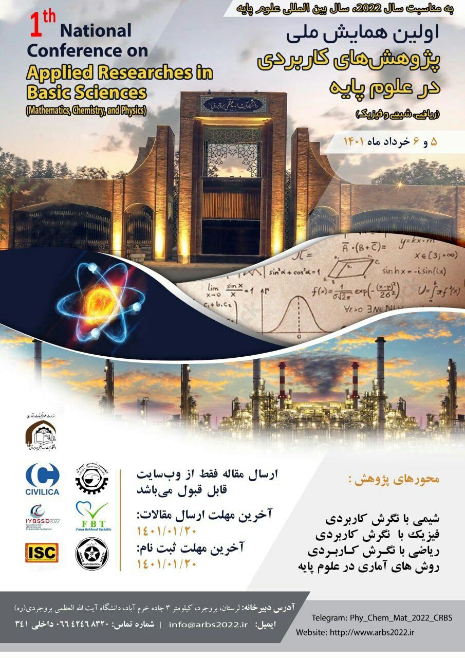 به مناسبت سال بین‌المللی علوم پایه اولین کنفرانس ملی پژوهش‌های کاربردی در علوم پایه (ریاضی، شیمی و فیزیک) بصورت مجازی توسط دانشگاه آیت‌الله‌العظمی بروجردی (ره) با حمایت انجمن‌های شیمی، ریاضی، سیویلکا و ISC با حضور اساتید برجسته و سرآمدان علمی کشور برگزار می شود.